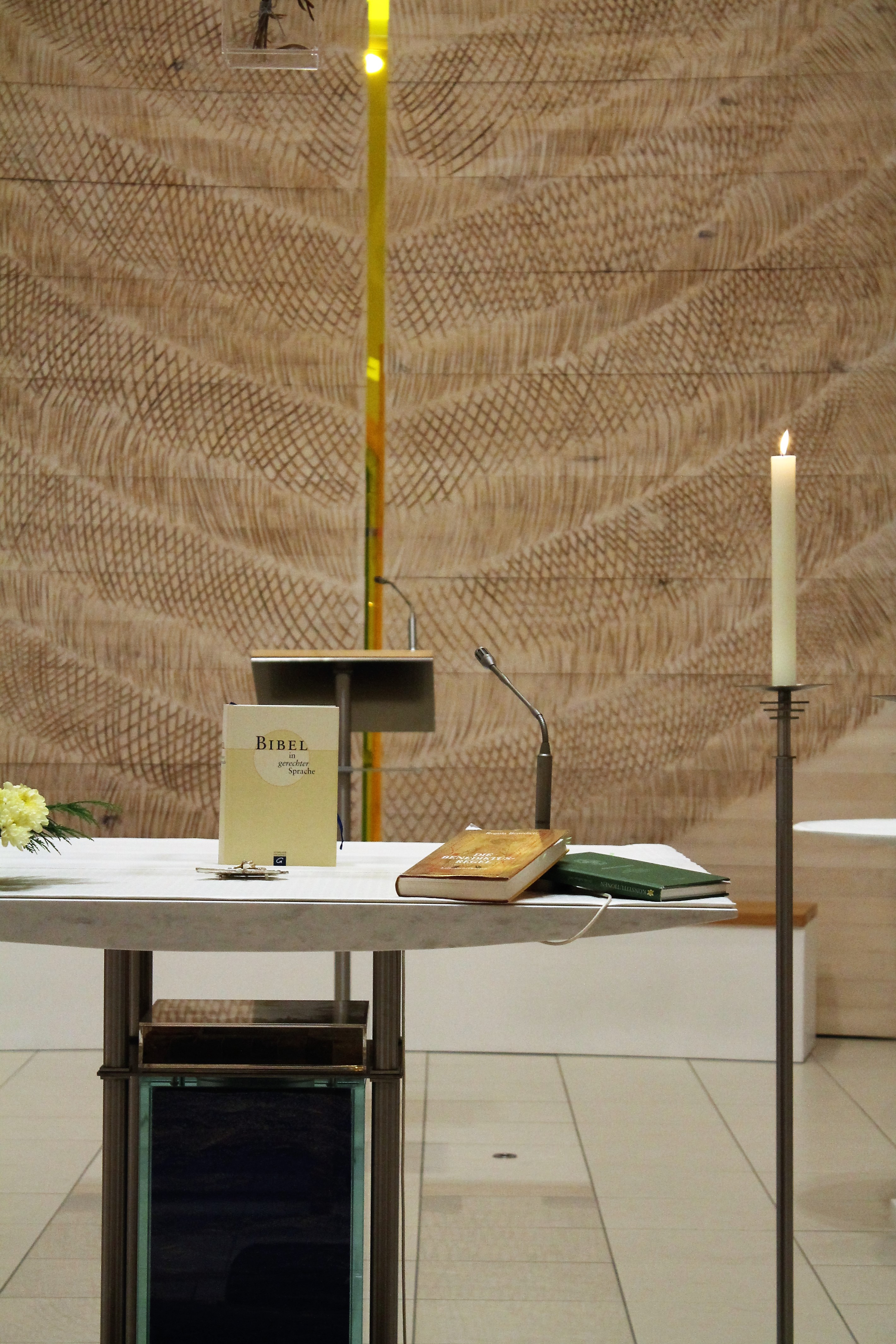 Zum Abschluss trafen wir uns noch einmal im Plenum um den vergangenen Tag Revue passieren zu lassen. Anschließend feierten wir gemeinsam die Vesper. Vor dem Altar lagen Symbole, die an die verschiedenen Gruppenaufgaben vom Vormittag erinnerten.