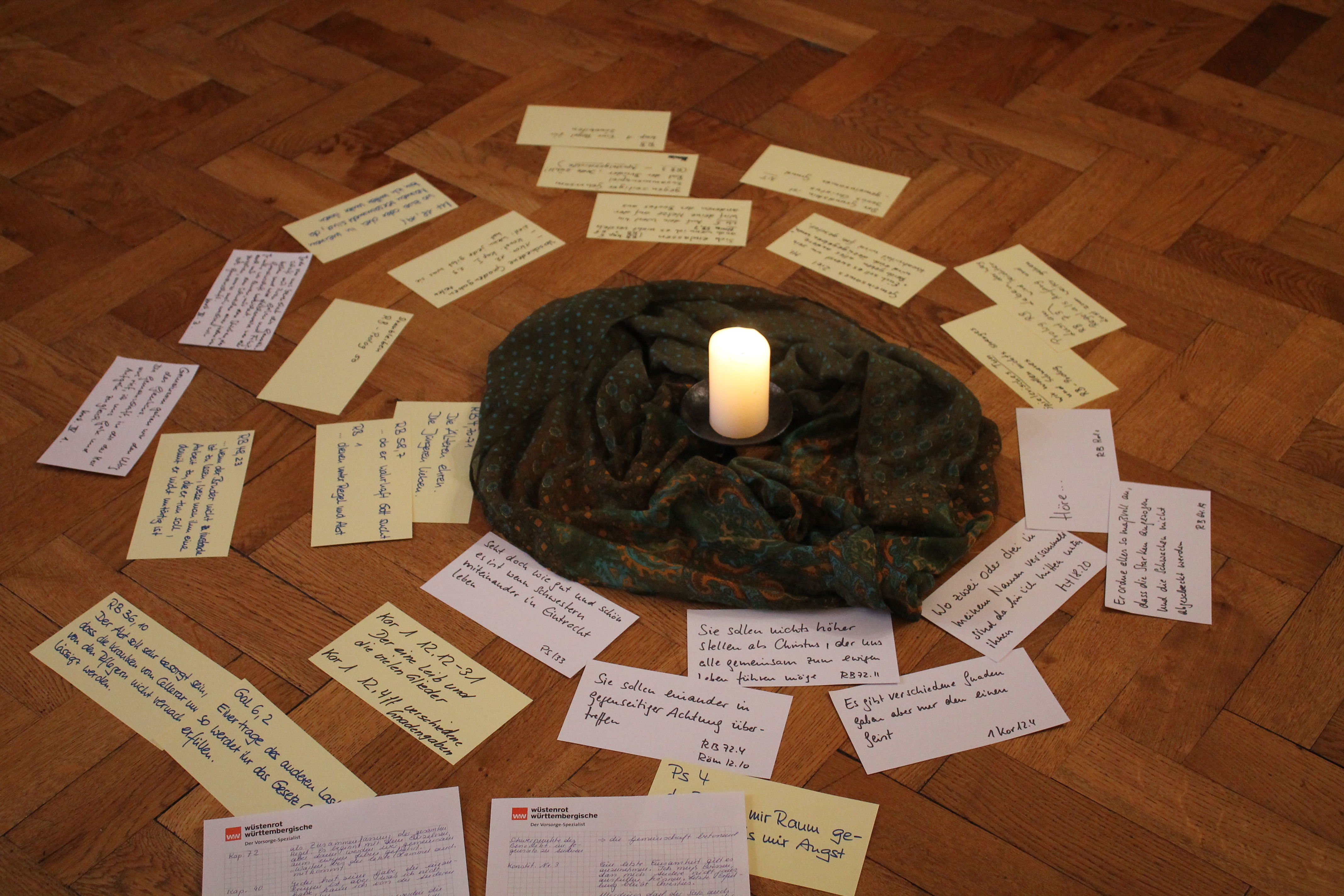 Nach einer ausgiebigen Pause nahmen wir uns am Nachmittag Zeit, näher die Text-Grundlagen zu Gemeinschaft in unseren Konstitutionen, der Regel Benedikts und der Heiligen Schrift anzuschauen. Wieder in Kleingruppen tauschen wir uns aus, wie sich Inhalte dieser Texte und die Erfahrungen aus dem Praktischen Teil am Vormittag konkretisieren ließen oder lassen.