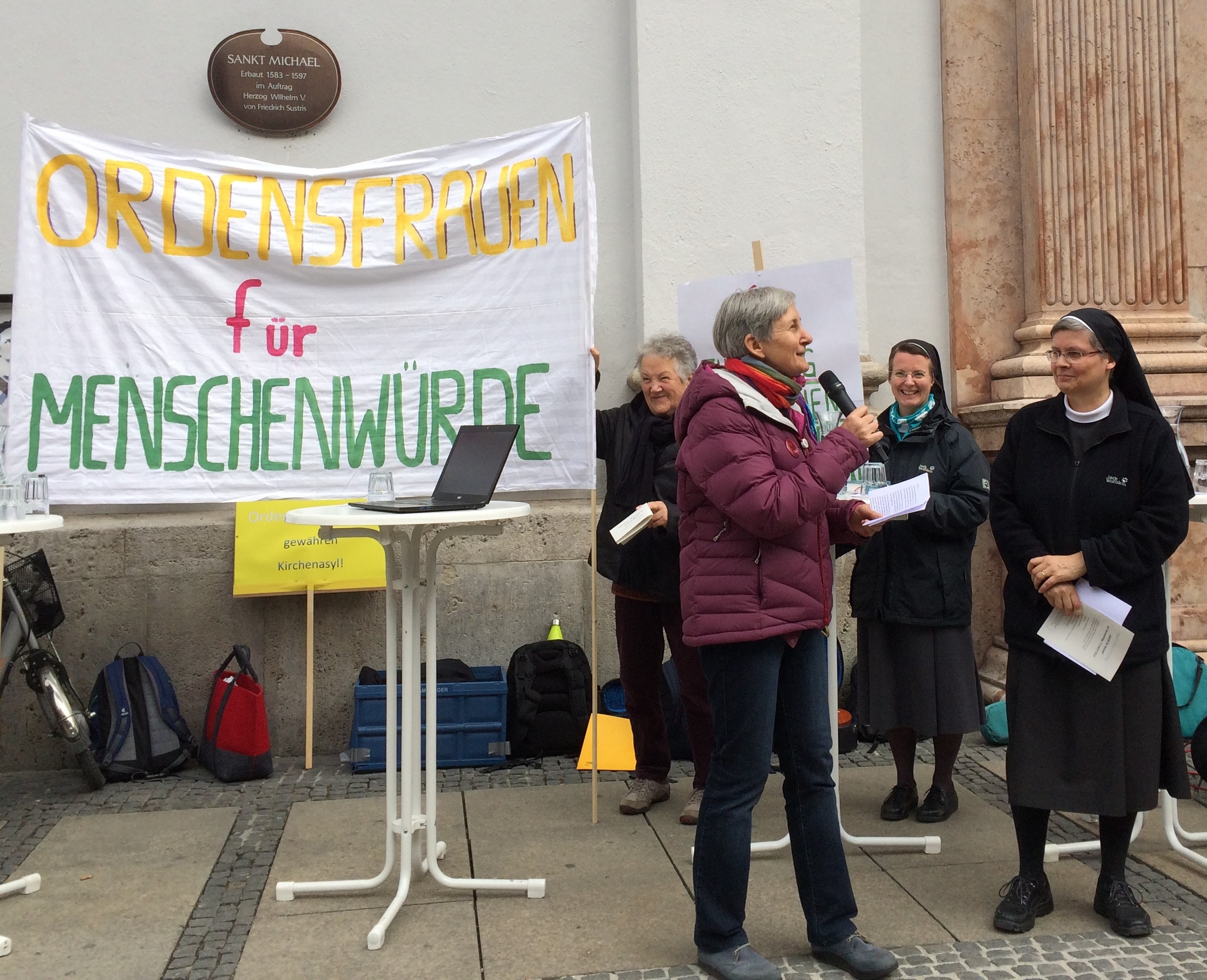 Die „Ordensfrauen für Menschenwürde“ luden am 11.04.2019 zum Gebet in die Fußgängerzone in München. Vor der Kirche St. Michael beteten wir das Gebet, das in der Schweiz entstanden ist und mittlerweile von vielen Gruppen, Ordensgemeinschaften und Gemeinden jeden Donnerstag gebetet wird.