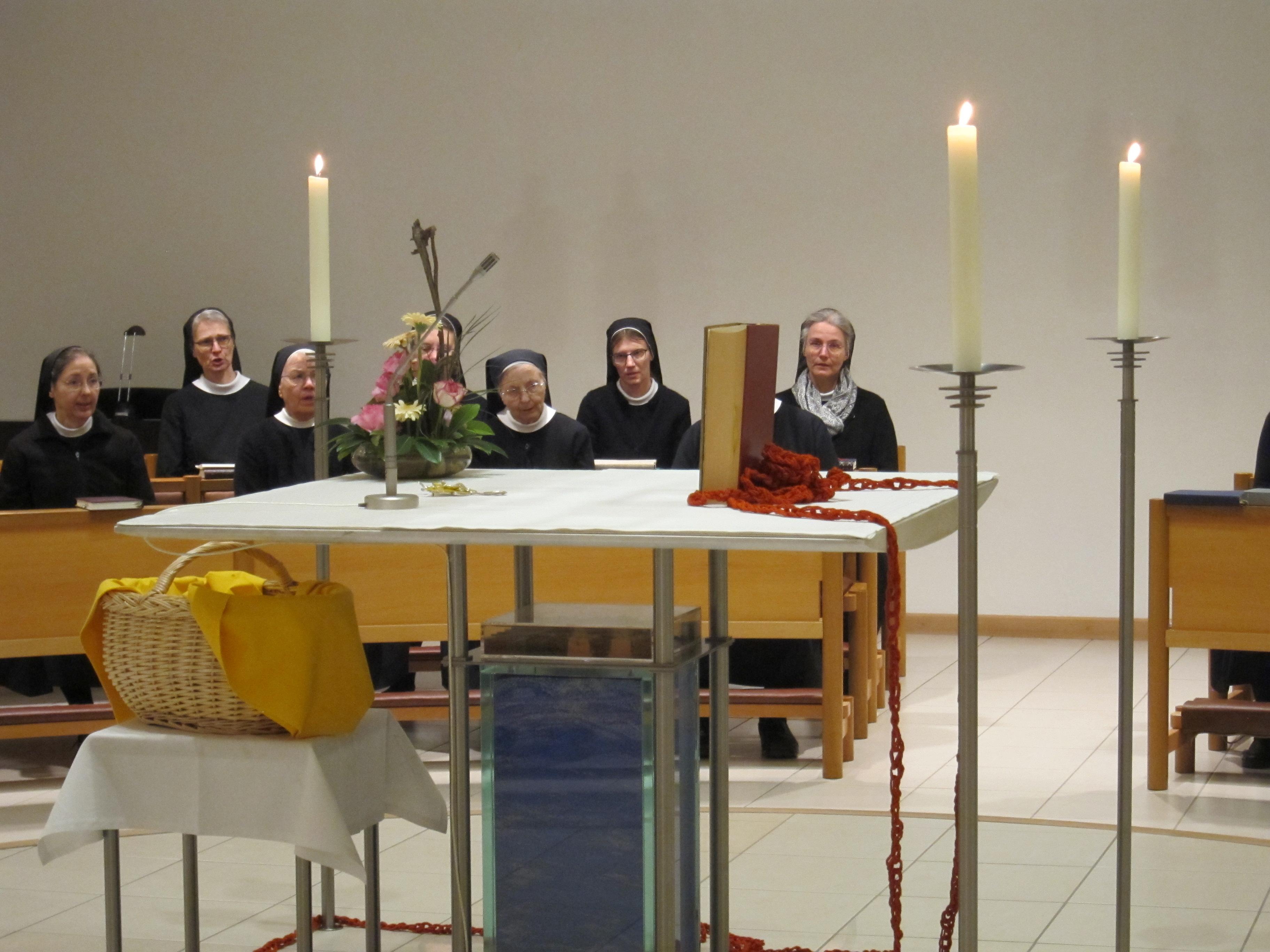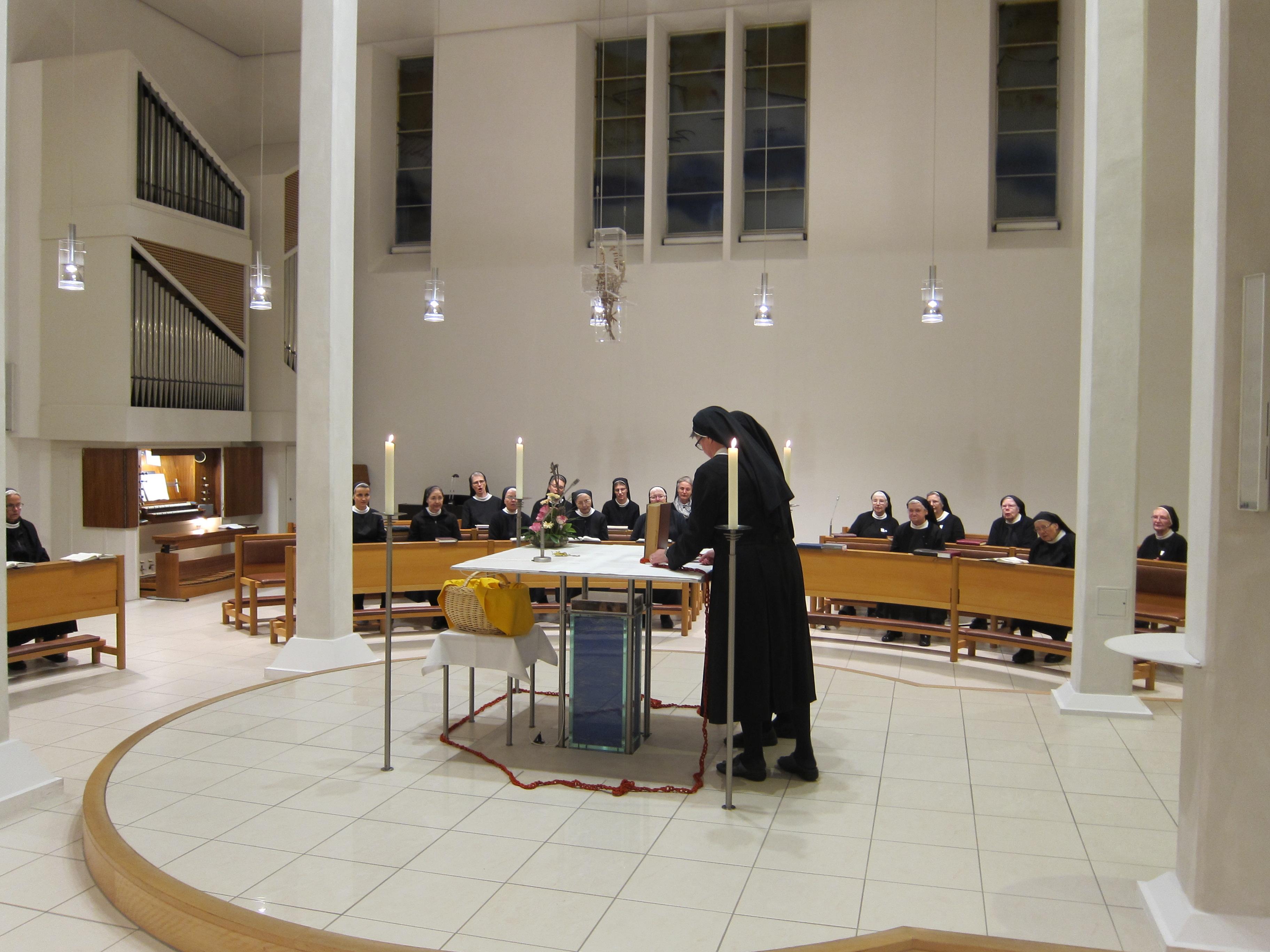 Den bedeutsamen Tag beenden wir mit der gemeinsamen Vesper, in der der Lesungstext aus dem Kolosser-Brief (Kol 3,10,12-17) durch mehrere Schwestern symbolisch dargestellt wird: