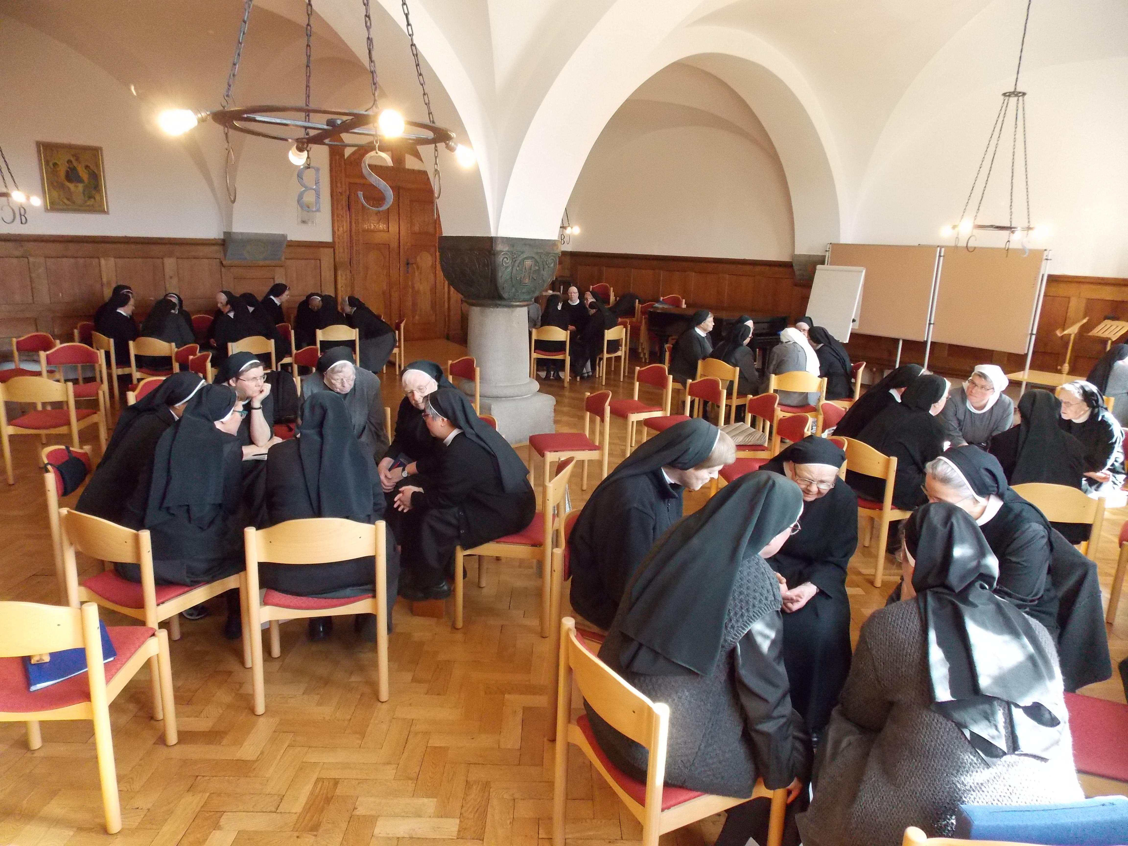 Die erneute Erfahrung, dass im Miteinander aller Generationen, aller Prägungen und der verschiedenen Ideen Gottes Zukunft für uns aufleuchten kann, machte uns wieder einmal deutlich, wie „Kirche sein“ in der Zeit von heute gehen kann. Bestärkt und beauftragt durch diesen gemeinsamen Tag mit allen Schwestern, begannen dann 21 Schwestern am 17.3. das Prioratskapitel.