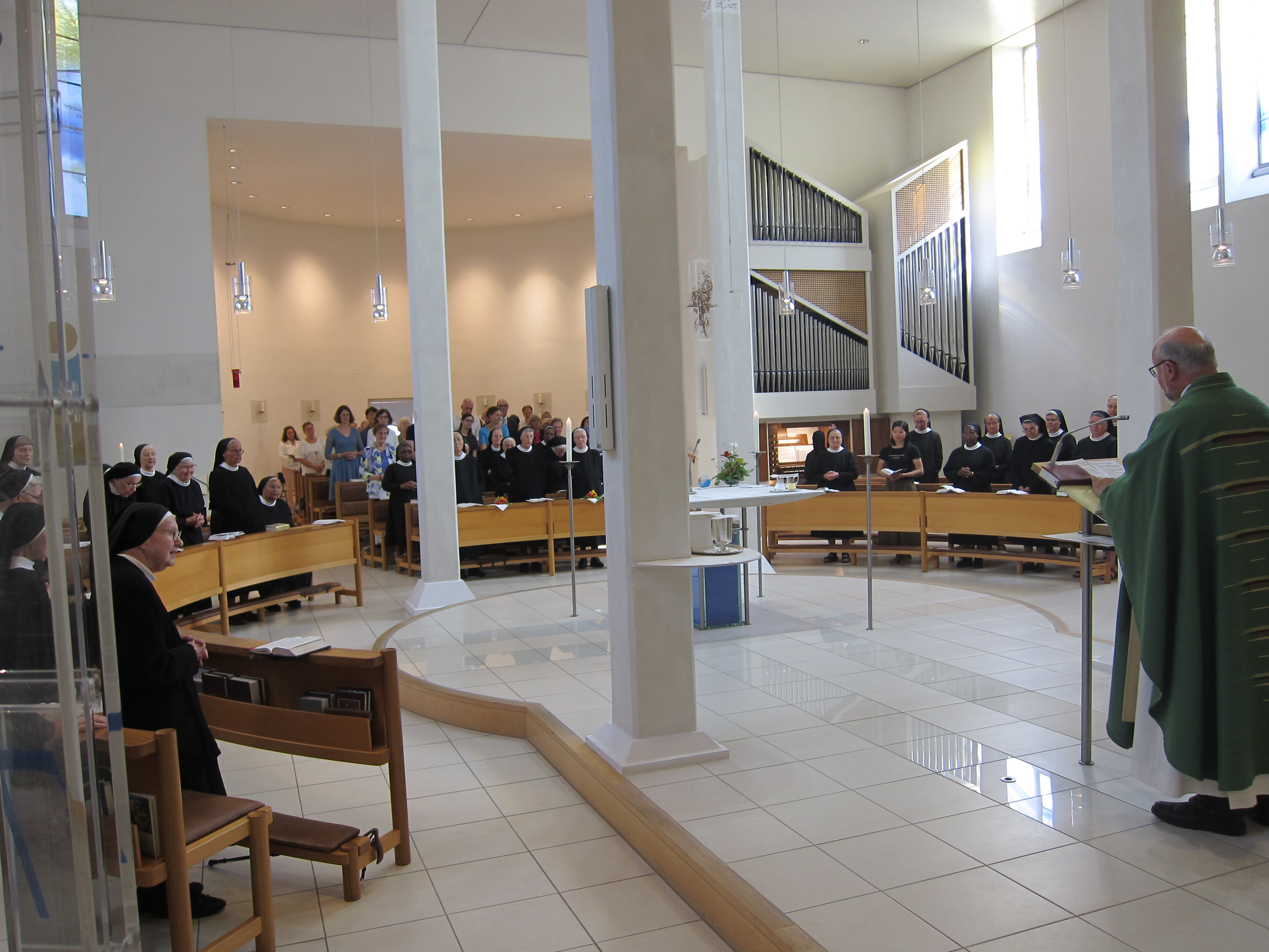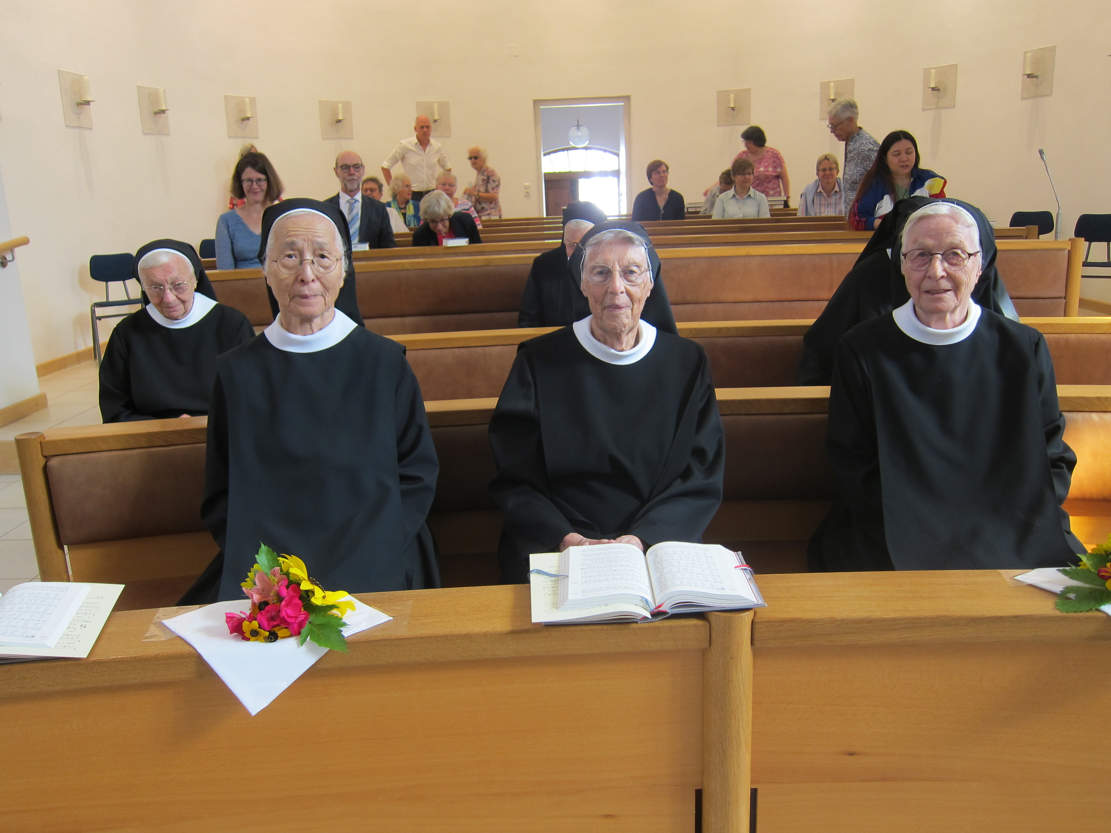 So verschieden die Wege der Jubilarinnen waren, so war es doch eine große Freude, dass wir in Tutzing mit drei Schwestern von der ehemals sieben Schwestern zählenden Gruppe dankbar feiern konnten, dass Gott ihre Ohren für seinen Ruf gehört hatten (Tagesevangelium Mk 7,31 ff.). Sie sind Seinem Ruf auf ihre je eigene Weise gefolgt und haben nun dankbar auf so vieles, was in diesen Jahren war, zurückschauen dürfen. Zu der Eucharistiefeier, die Pfarrer Peter Brummer leitete, kamen zahlreiche Gäste von Nah und Fern.
