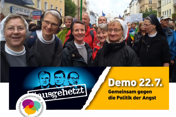 Am 22. Juli beteiligen sich Schwestern an der bayernweiten Demonstration „#ausgehetzt – gegen eine Politik der Angst.“