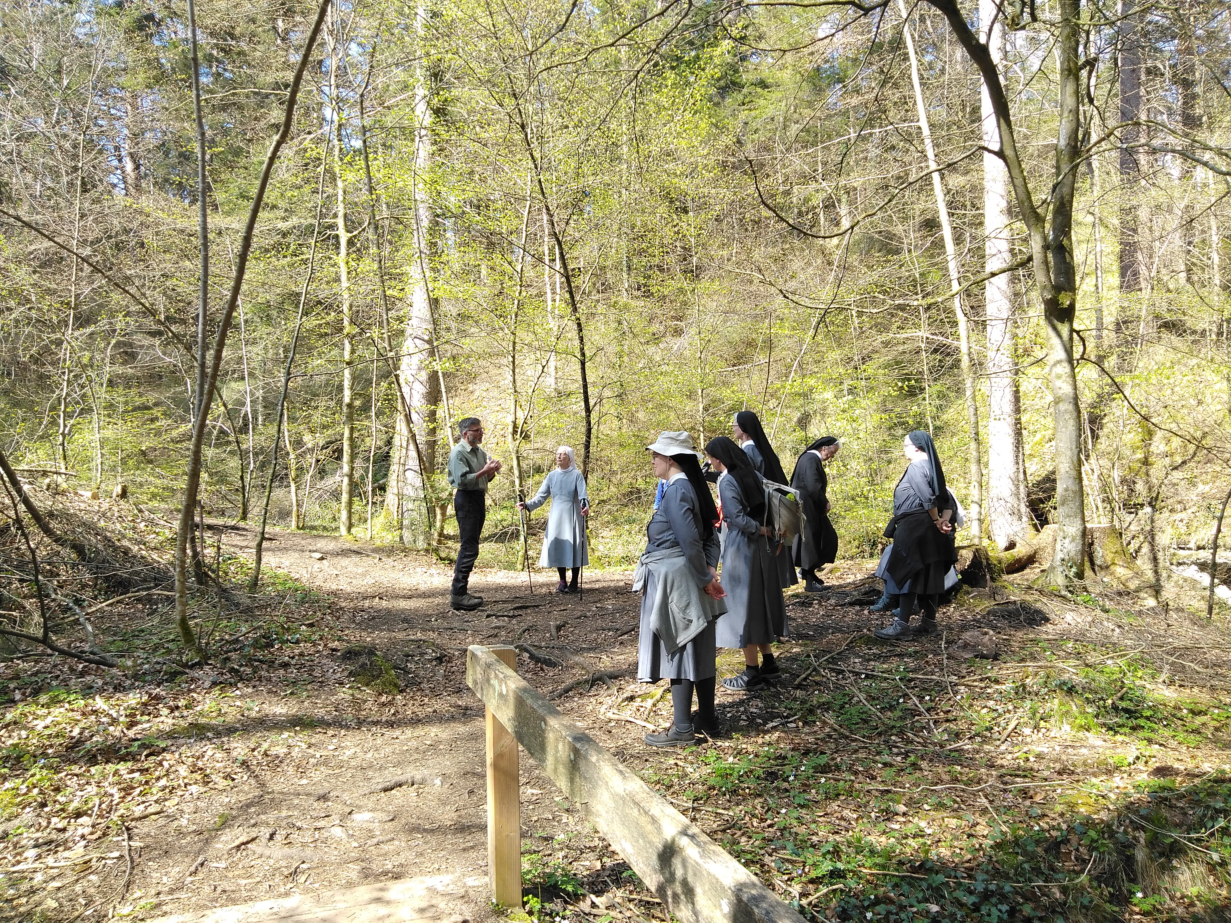 Am letzten Samstag machten sich auf Einladung der Kommission „Bewahrung der Schöpfung“ mehrere Schwestern auf den Weg zur Waldschmittschlucht in Tutzing. Dort entdeckten wir dem staatlich geprüften Forsttechniker, Förster und zertifizierten Waldpädagogen Martin Laußer Erstaunliches aus Jahrtausenden Klima- , Geologie-, Natur- und Kulturgeschichte. Außerdem erfuhren wir, wie sich der Klimawandel auf unseren Wald auswirkt, was die Natur uns Menschen voraushat und wie der Wald der Zukunft aussehen wird.