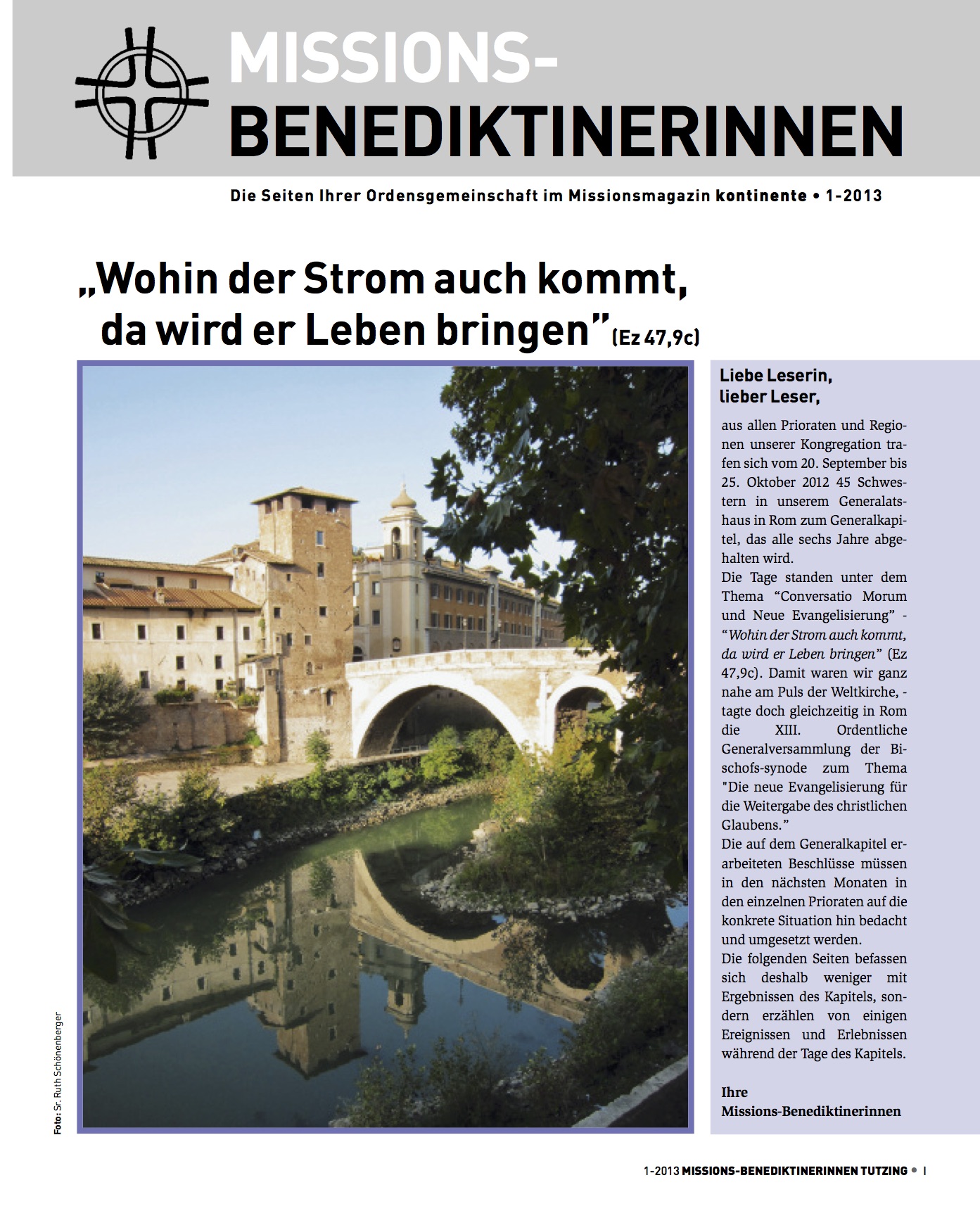 Wir Missions-Benediktinerinnen geben zusammen mit 27 weltweit tätigen Ordensgemeinschaften und Hilfswerken das katholische Missionsmagazin "kontinente" heraus.